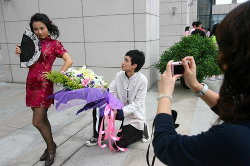 组图:广州大学生穿旗袍、唐装拍毕业照(2)