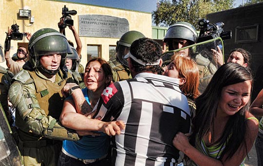 4月26日,智利首都大区科利纳市二号监狱发生火灾事故,已造成至少9人死亡。图为人们在失火的监狱外等候亲人的消息。