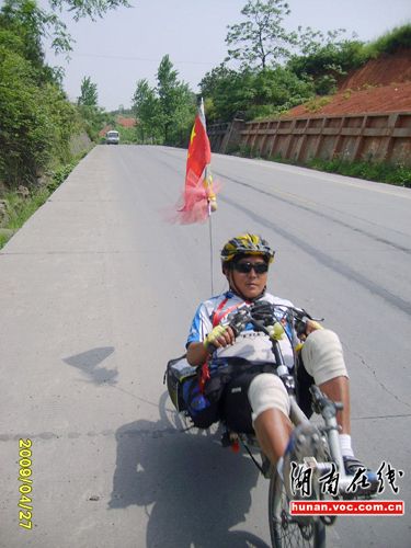 “酷毙了,正宗的睡式单车,躺着还能骑得飞快!”28日,一名网友向记者爆料,称27日中午11时许,在湖南衡阳耒阳107国道上发现一名牛人,骑着辆非常罕见的卧式单车在“飙车”,造型非常拉风。