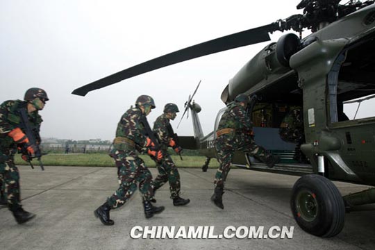 成都军区某集团军立足现有条件,依托协作训练机制积极主动作为,以联合训练为“龙头”,筹划、设计和组织兵种训练,推动联合训练的深入发展。他们根据训练任务需求和未来作战模式,按照实战强度、实效模仿的原则,全程设置复杂电磁环境,进行互为条件、互为对手的协同对抗训练,熟悉掌握相互识别、引导、通联、支援和保障环节,解决了单一兵种训练“练无对手、打无目标”的问题,真正按大纲把联合训练落实到部队训练的各个层面。图为步兵与陆航联合训练的镜头。(高效文)