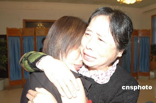 图为成都军区某陆航团邱光华机组副驾驶李月烈士的母亲(右)与被救伤员董家燕紧紧相拥,泣不成声。中新社发 肖龙联 摄
