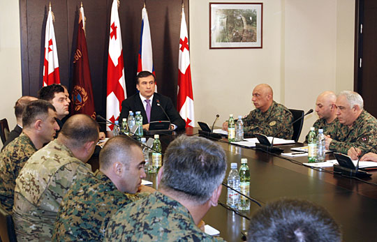 格鲁吉亚总统萨卡什维利举行国防部会议。