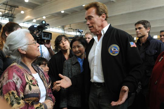 组图:加州州长施瓦辛格看望山火受灾民众 (2)