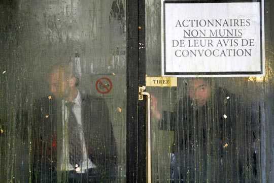 组图:法国一公司股东遭遇员工“鸡蛋雨”(3)