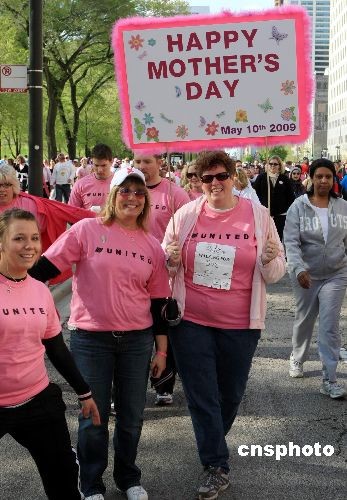 美国当地时间5月10日清晨,芝加哥市民走上街头用健康跑的方式庆祝母亲节,并为慈善基金募捐。