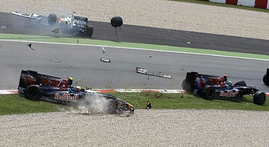 5月10日,红牛二队车手布尔代和队友布埃米以及印度力量车队车手苏蒂尔、雷诺车队车手皮盖驾驶的赛车发生碰撞。当日,F1西班牙大奖赛落幕,布朗GP车队的英国车手巴顿夺得冠军。