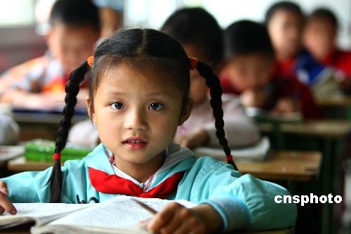 5月11日,在四川大地震将迎来一周年之时,小学生在板房搭建的课堂里认真的上课。四川省绵阳市安县在去年大地震中受灾严重,目前全县规划恢复重建学校49所,包括高中、职业中学、初中、小学等,规划总建筑面积38万多平方米。