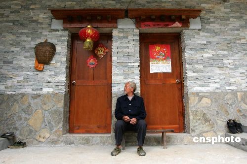 [汶川地震一周年]“北川第一村”吉娜羌寨震后忙重建(3)