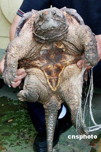 图:江苏泰州一居民捕获重16斤的大鳄龟(2)