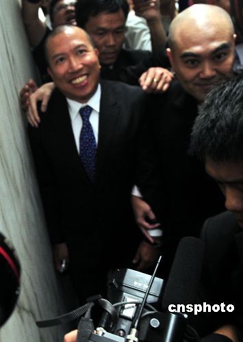 五月十一日,声称是已故华懋集团主席龚如心遗产受益人的陈振聪,由律师等陪同前往香港高等法院,由于有大批传媒采访,他步入法庭时引起混乱。中新社发 谭达明 摄