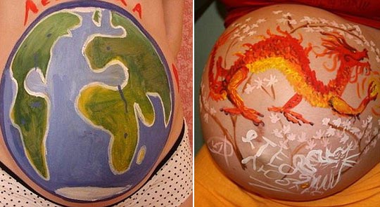 组图:孕妇用肚皮展示别样的另类艺术(6)