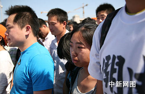[汶川地震一周年]民众在天安门广场哀悼遇难同胞 为中国加油(2)