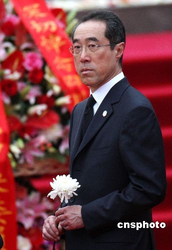 5月12日下午,纪念四川汶川特大地震一周年活动在震中四川省汶川县映秀镇举行,香港特区政务司司长唐英年参加纪念活动并向遇难者献花。中新社发 任晨鸣 摄