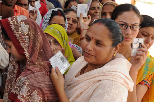 5月13日,印度举行第五阶段、也就是最后阶段的国会选举投票。随着这场马拉松选举的结束,在前几个阶段的投票活动中禁止公布的出口民调也纷纷出炉。不过,官方计票结果要到周六才会公布。 图为印度民众在投票站排队投票。