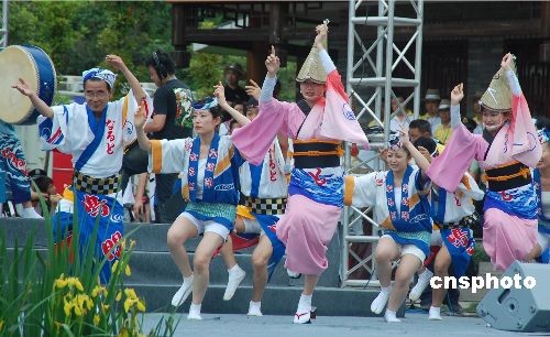 中国张家界国际乡村音乐周5月14日在湖南张家界武陵源风景区开幕,来自日本德岛县鸣门市阿波舞演出团正在表演。音乐周期间,来自世界五大洲18个国家的24支境外乡村音乐团队和国内7支乡村音乐团队,将在世界自然遗产张家界奇山异水间演绎最美妙的乡村音乐,唱响天籁之音,游客可以享受张家界美妙的音乐旅程。据称,这是中国第一次举办如此大规模的国际乡村音乐节。中新社发 刘双双 摄