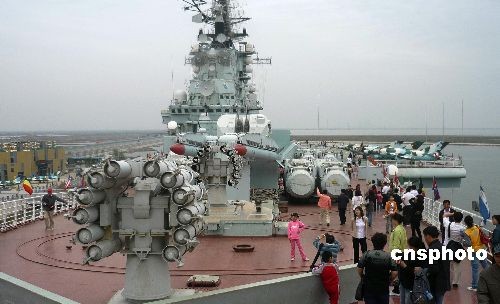 5月15日,前来天津滨海航母主题公园“基辅号”参观航母的中外游客络绎不绝。近年来,围绕中国自主建造航母的话题成为倍受关注的焦点。据悉,“五一”假期航母主题公园参观游览的中外游客3天达4万多人次。从俄罗斯购入的“基辅号”航空母舰改为游览景观后,集军事、海洋为两大科技知识主题并成为青少年大型国防教育基地。中新社发 钱兴强 摄