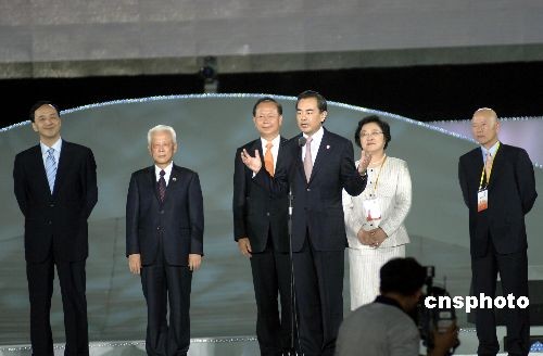 5月16日晚,首届海峡论坛在厦门隆重开幕。图为中共中央台办、国务院台办主任王毅在开幕式上致欢迎辞。中新社发 王东明 摄
