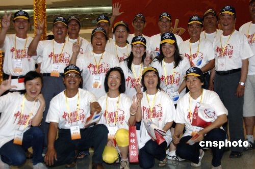 5月16日晚,首届海峡论坛在厦门隆重开幕,台湾花莲民众在开幕式现场兴奋合影留念,宛如参加盛大嘉年华。中新社发 王东明 摄