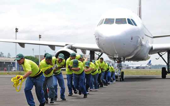 组图:拖飞机大赛众力士力拖空中客车(3)