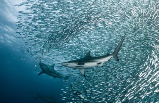 组图:海豚群捕食沙丁鱼群的壮观照片(2)