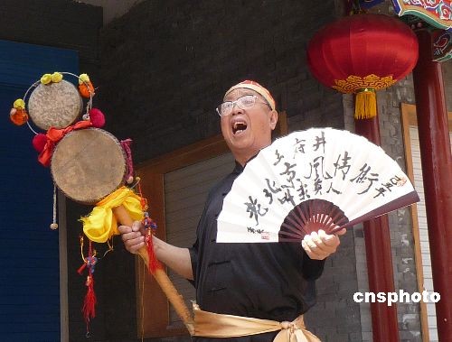 2009年5月23日,北京王府井商业街的“老北京风情街”和王府井庙会试营业,其间老北京各行当的叫卖表演为风情街增添了浓郁的民俗色彩,吸引了众多游客前来观赏并购物。中新社发 玉龙 摄