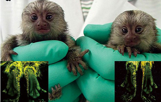 据英国媒体28日报道,近日,日本研究人员宣布培育出了一种转基因绒猴,这种猴的发根、皮肤和血液在特定光线照射下都会发出荧光,且该特性能遗传给下一代。