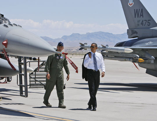 图:奥巴马视察空军基地太阳能发电装置(3)