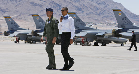 图:奥巴马视察空军基地太阳能发电装置(4)