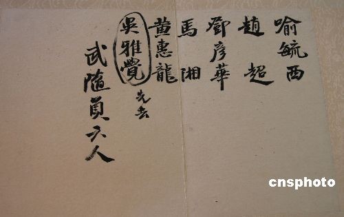 6月1日是孙中山先生奉安南京中山陵80周年。为缅怀中山先生的历史勋业,中国国民党党史馆精选一批文物、文献举办特展。图为孙中山先生当年北上时亲笔拟定的随行武官名单。中新社发 耿军 摄
