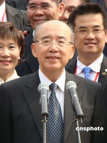 6月1日上午8时30分许,吴伯雄率领中国国民党大陆访问团晋谒南京中山陵。图为谒陵仪式后,吴伯雄在博爱广场向媒体发表了演讲。中新社发 丁梅 摄