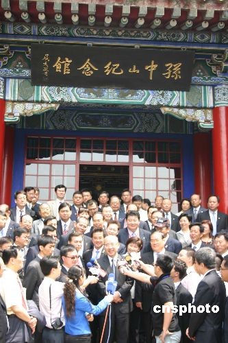 6月1日上午,中国国民党主席吴伯雄一行参观孙中山纪念馆。孙中山纪念馆原名藏经楼,馆内藏有中山先生经典著作、奉安照片等珍贵史料,用以展示孙中山先生史迹。大厅四壁镶嵌着孙中山先生手书的《建国大纲》全文巨匾,正面壁上镌刻胡汉民手书《总理遗嘱》,两侧是孙中山手书“人类进化,世界大同”对联。主楼后面长达125米的大型碑廊上,刻有孙中山先生所著、长达15.5万字的《三民主义》全文。纪念馆一直到孙中山先生奉安60周年前夕才正式对外开放。中新社发 朱晓颖 摄
