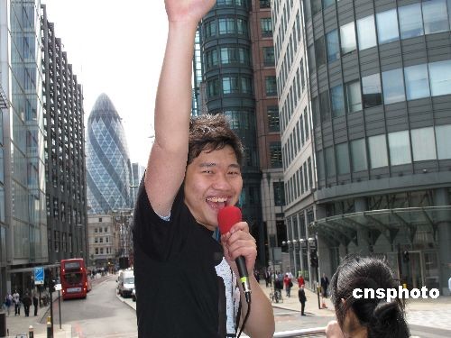 张敬龙巡游伦敦 为选欧洲议员拉票(图)
