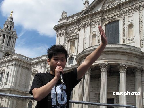 张敬龙巡游伦敦 为选欧洲议员拉票(图)