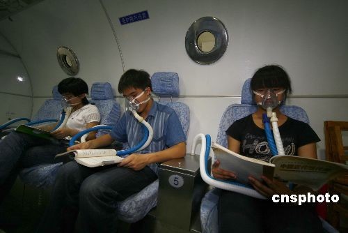 6月4日晚上,四川省遂宁市十余名高三学生正在遂宁市中心医院高压氧舱吸氧,以缓解即将到来的高考的压力。中新社发 钟 敏 摄
