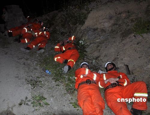 图为武隆滑坡山体救援现场,救援人员分批休整。中新社发 郭晋嘉 摄