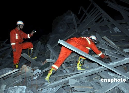 图为救援人员在废墟中搜寻被困者。中新社发 郭晋嘉 摄