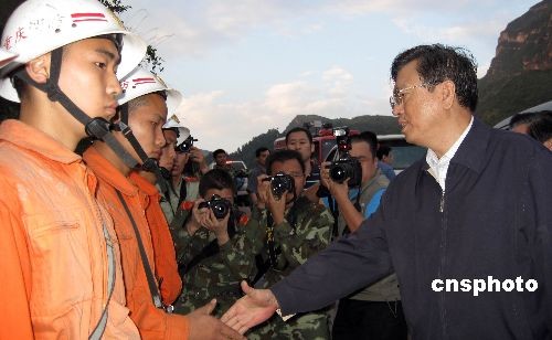 图为张德江慰问救援人员。中新社发 郭晋嘉 摄