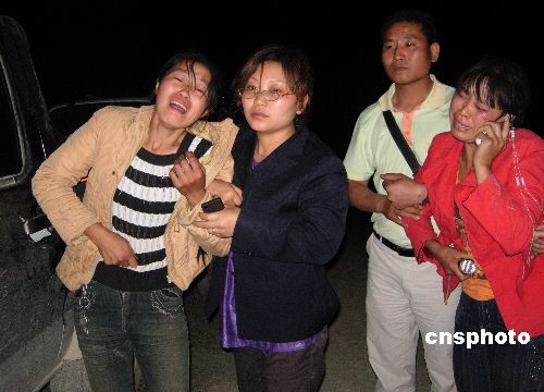 图为事故现场,被困者家属伤心欲绝。中新社发 郭晋嘉 摄