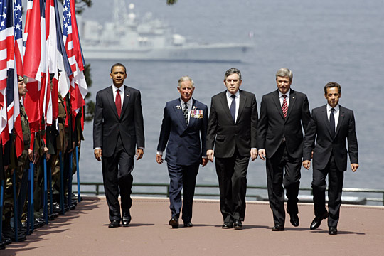 6月6日,美国总统奥巴马、英国王储查尔斯、英国首相布朗、加拿大总理哈珀和法国总统萨科齐参加纪念盟军诺曼底登陆65周年仪式。除各国政要外200多名曾经参加诺曼底登陆的老兵也出席了该纪念仪式。