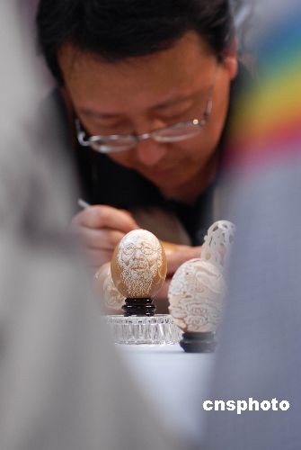 民间工艺品展销活动中现场表演蛋雕