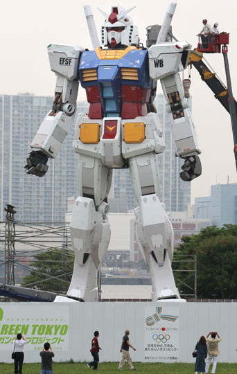 6月9日,一个高达18米的巨型卡通人物模型“机动战士高达”出现在日本东京一家公园内,此举为了纪念该动画片播出30周年,并且让市民支持东京申办2016年夏季奥运会。