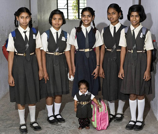 据英国媒体10日报道,来自印度的世界上最袖珍姑娘乔蒂•阿姆格今年15岁,身高只有58厘米,体重不足5公斤,但小姑娘怀有明星梦,将在英国的电视节目上亮相。