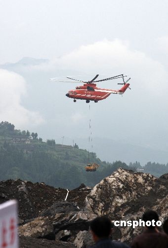 世界最大直升机几经辗转飞抵垮塌现场抢险