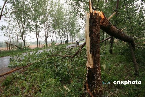 6月14日,罕见天气现象——飑(音biāo)线再次发威,侵扰安徽,使安徽省大部分地区遭大风、冰雹等强对流天气袭击,造成8人死亡,120人受伤。中新社发 胡卫国 摄