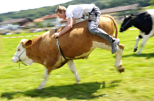 组图:德国小镇举行别开生面的骑牛大赛(2)