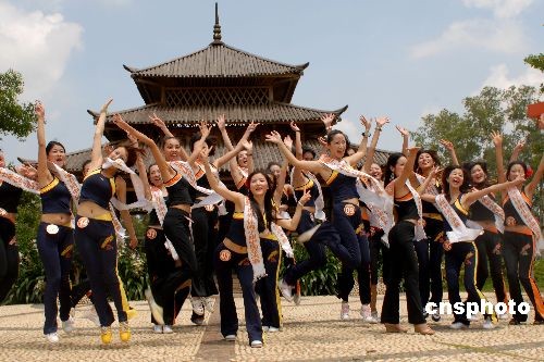 图为2009年6月16日世界休闲小姐中国总决赛选手在南宁市青秀山风景区拍外景。世界休闲小姐中国总决赛月底将在广西南宁举行。
