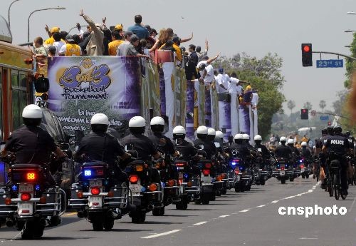 组图:洛杉矶大游行庆祝湖人队夺NBA冠军 (3)