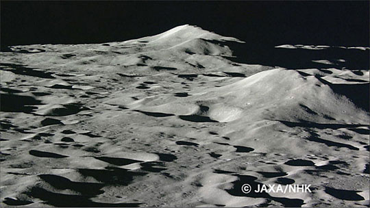 日本宇宙航空研究开发机构和HNK电视台19日在网页上公开了探测卫星“月亮女神”在11日完成任务坠落月表之前拍摄到的月表照片。