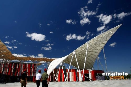 第七届中国花卉博览会将于9月26日至10月5日在北京顺义举行。6月22日,本届花博会主会场——北京国际花卉物流港已进入最后内装修和设备调试阶段,预计6月30日全面完工并投入试运营。值得一提的是,花博会主会场的标志性建筑36个钢伞宛如36朵鲜花,绽放在市民面前。中新社发 富田 摄