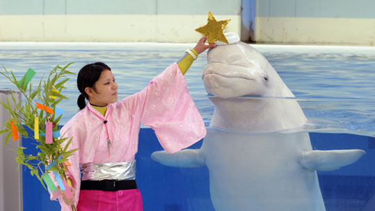 美图:潜水员与白鲸水族馆中共舞(3)